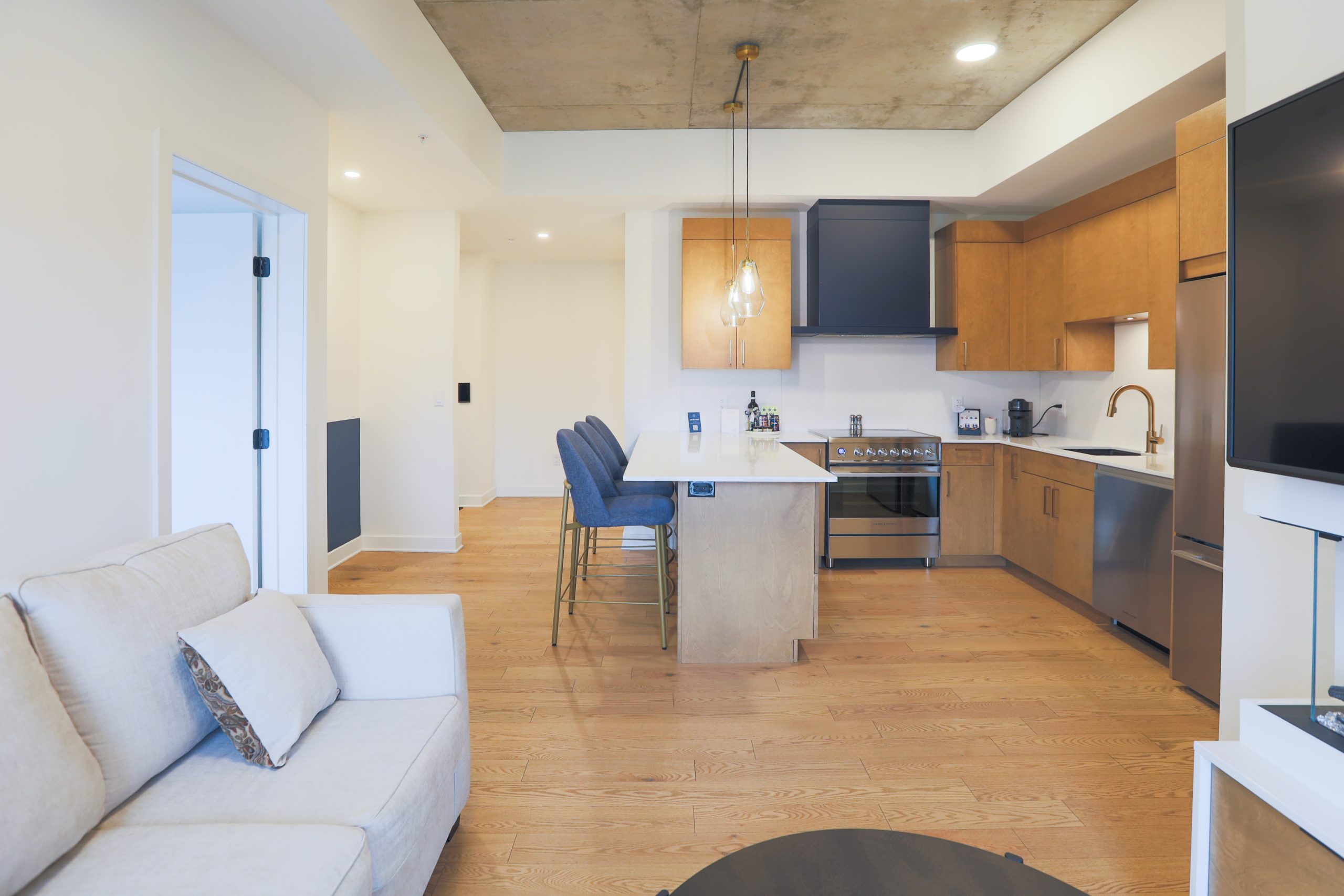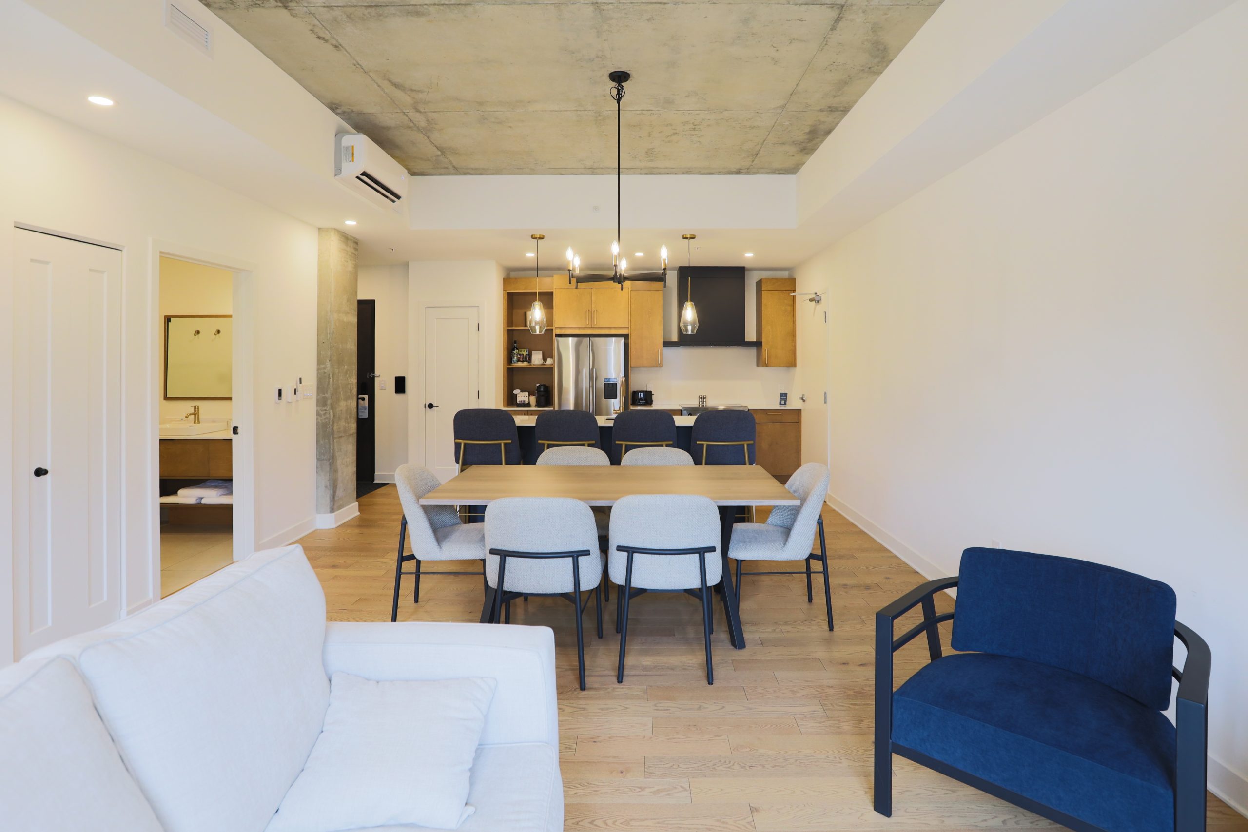Nos unités d’une chambre offrent un refuge luxueux et spacieux. Dotées d’une cuisine entièrement équipée, d’une chambre et d’un salon séparés, ces suites allient intimité et confort, ainsi que des équipements modernes et un mobilier élégant, garantissant un séjour agréable avec une touche de raffinement et de détente.