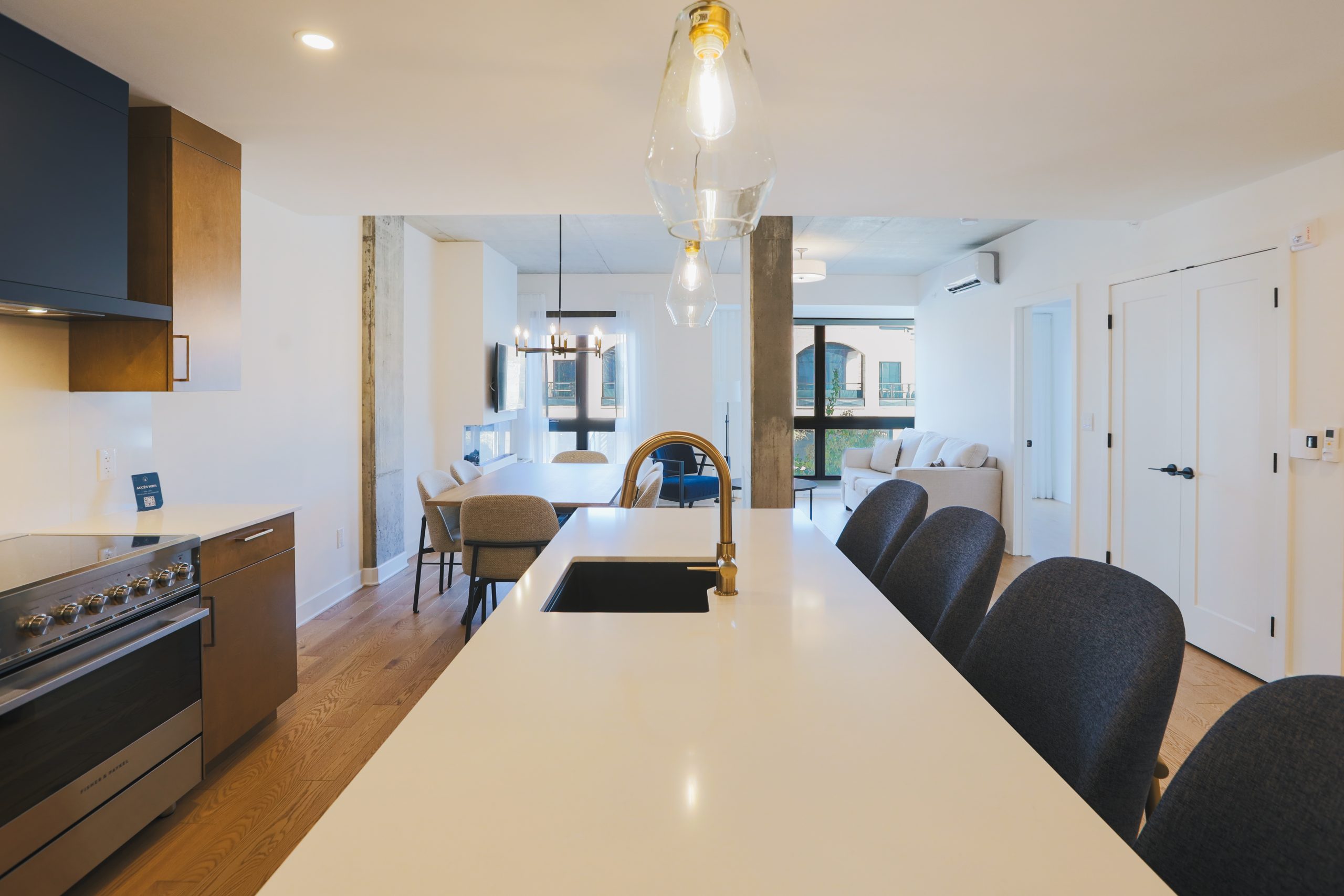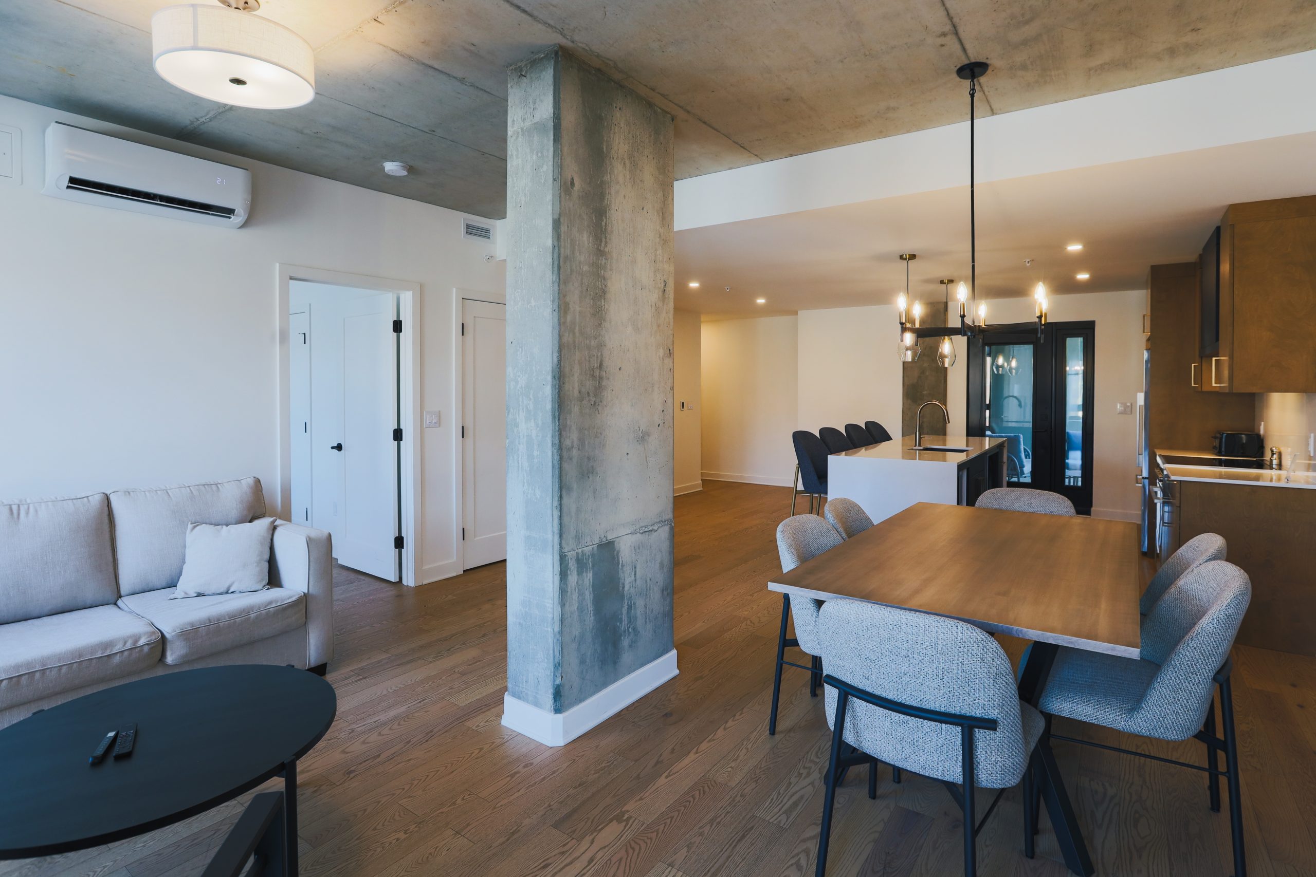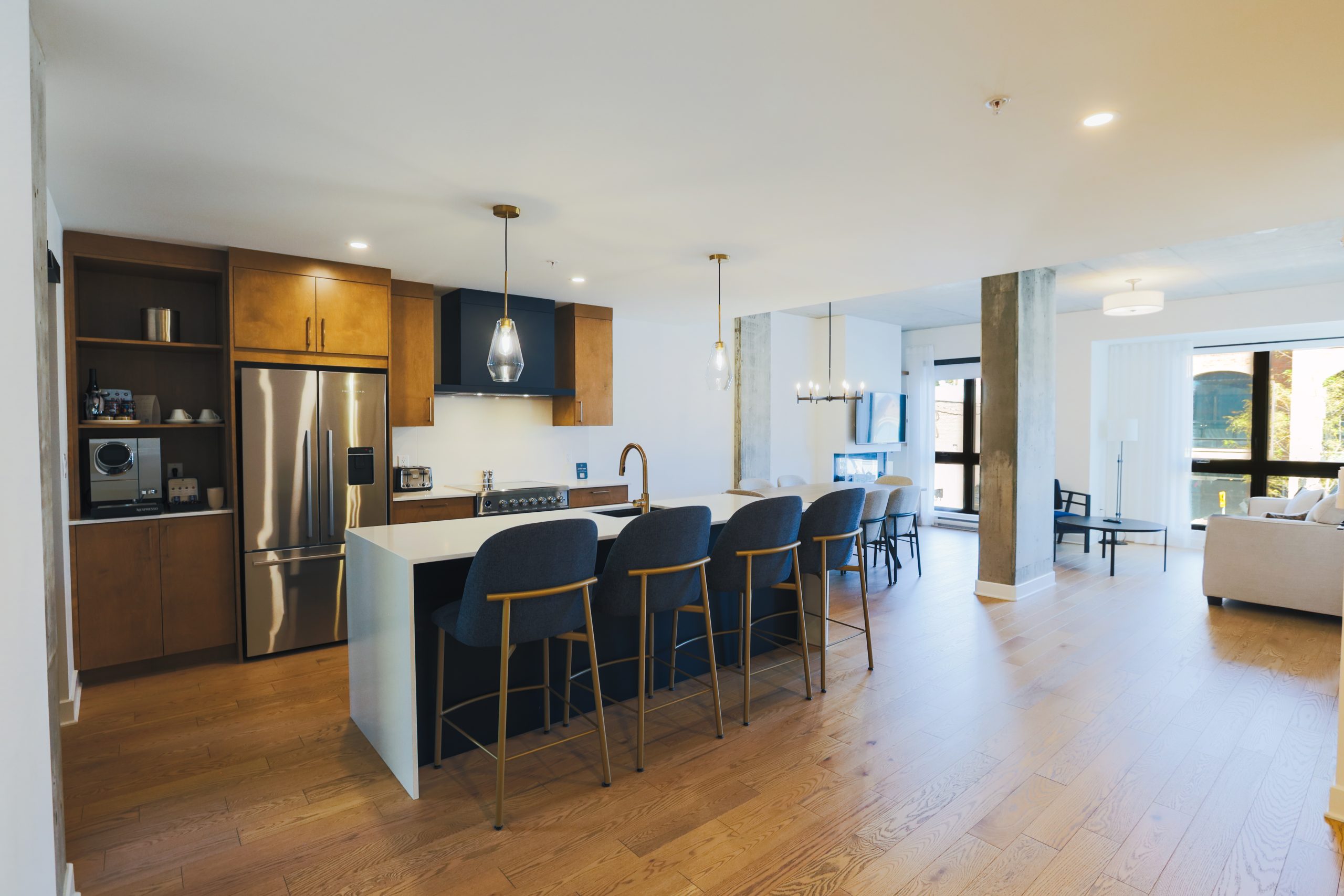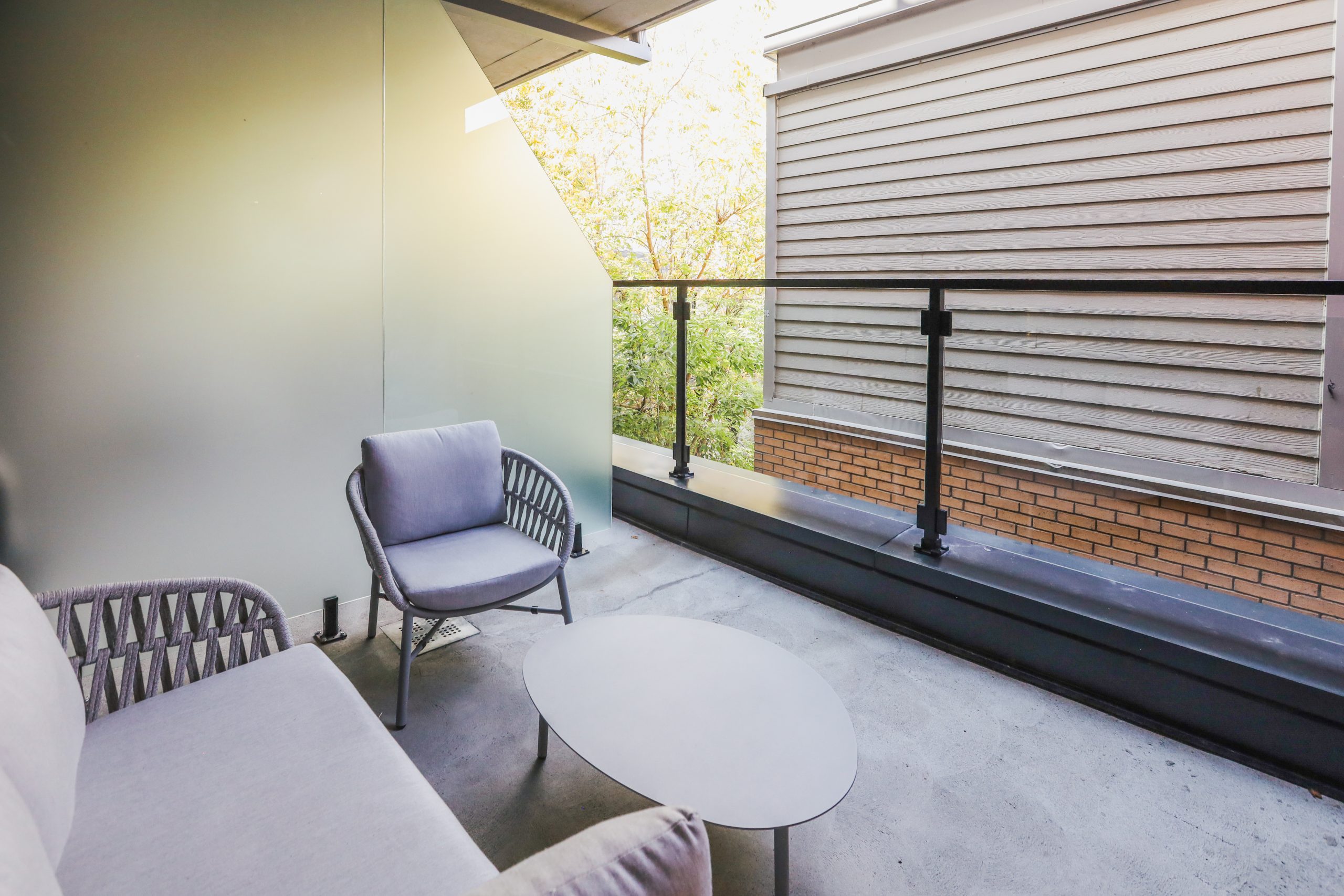 Son balcon privé et sa vue sur la rue Principale invitent à profiter pleinement de l’énergie du centre-ville — chien admis.