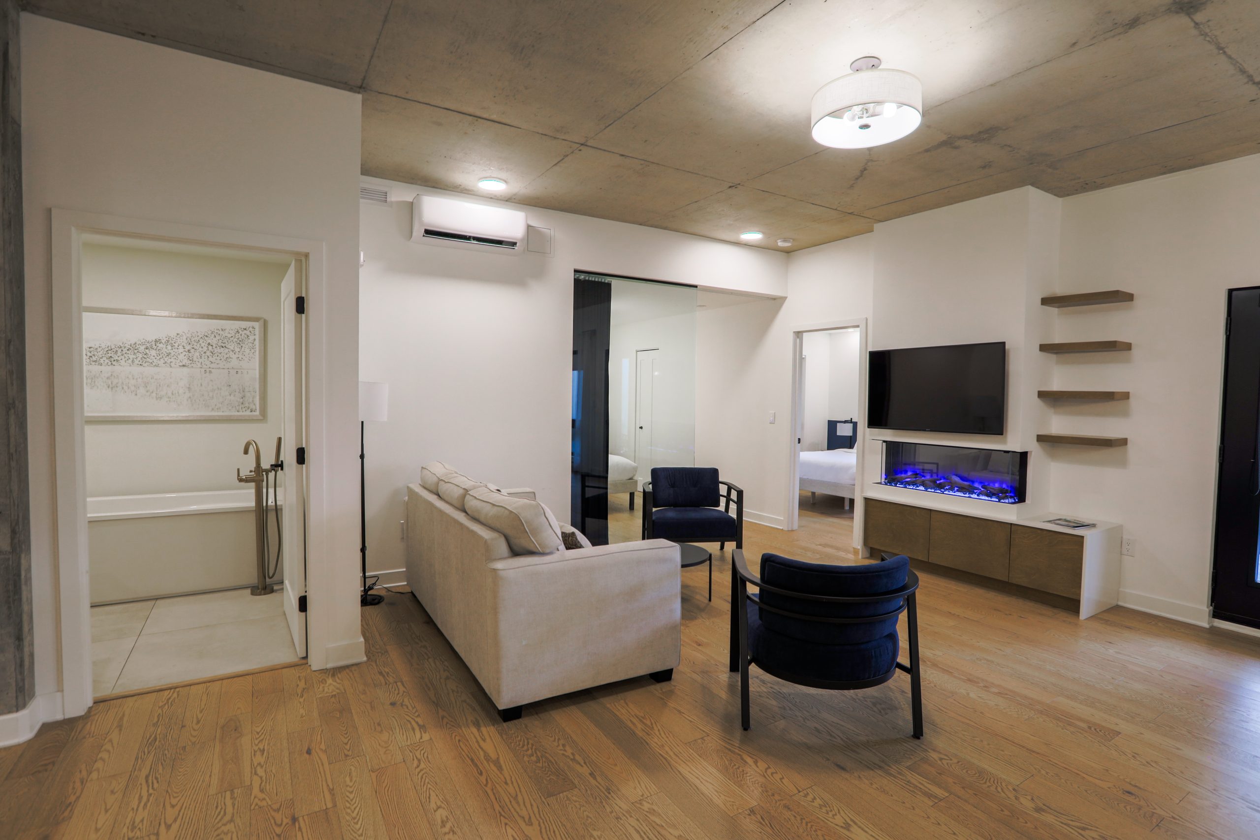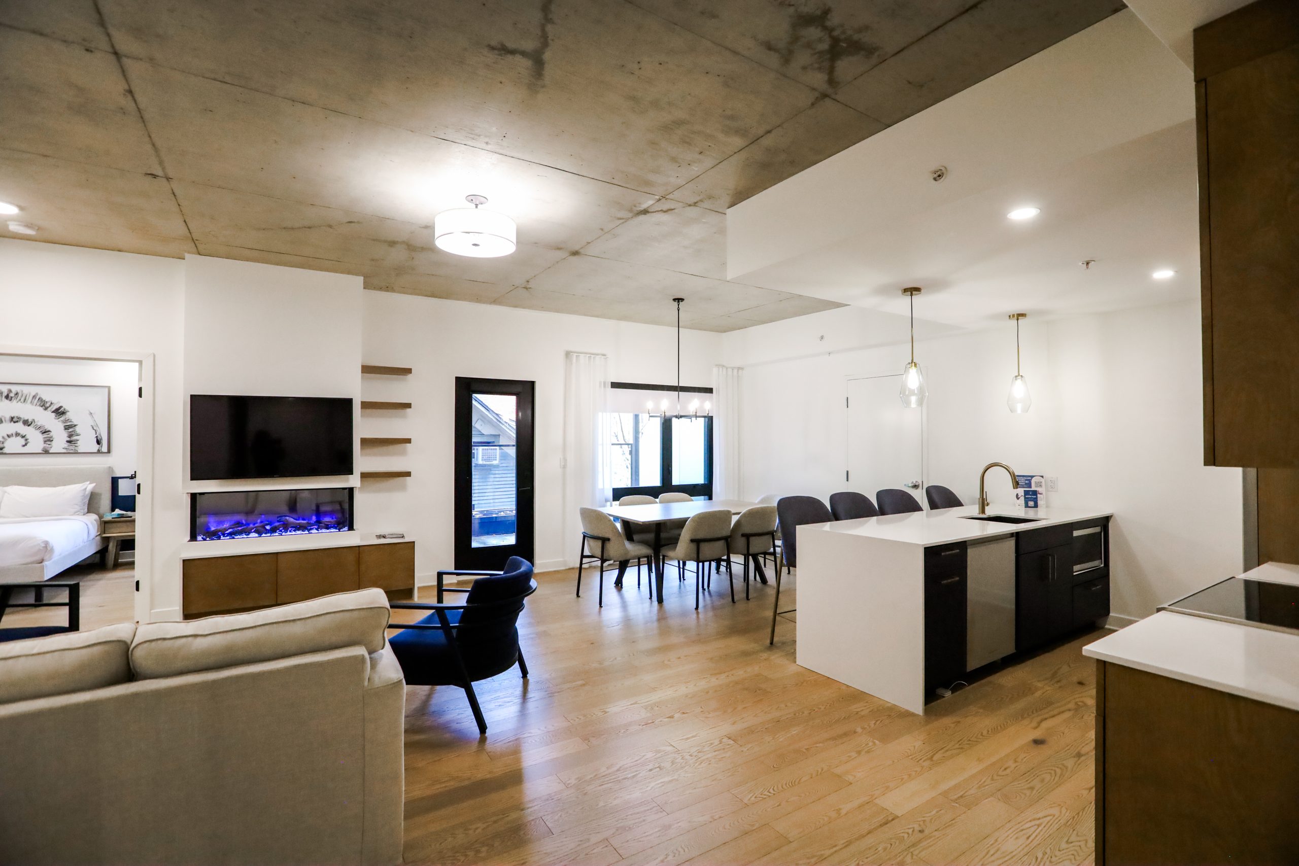 Cette suite offre un espace de vie spacieux et lumineux — chien admis.