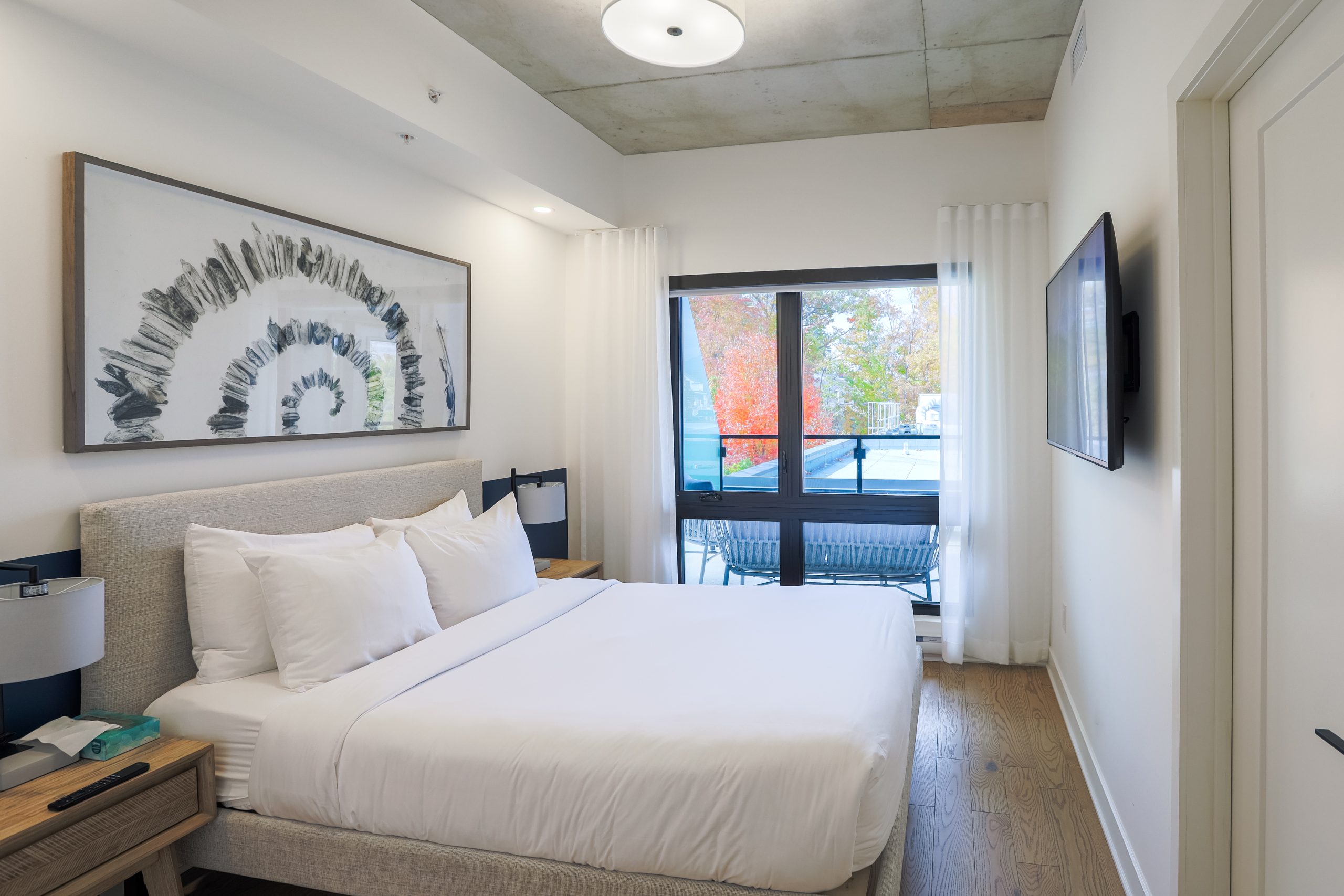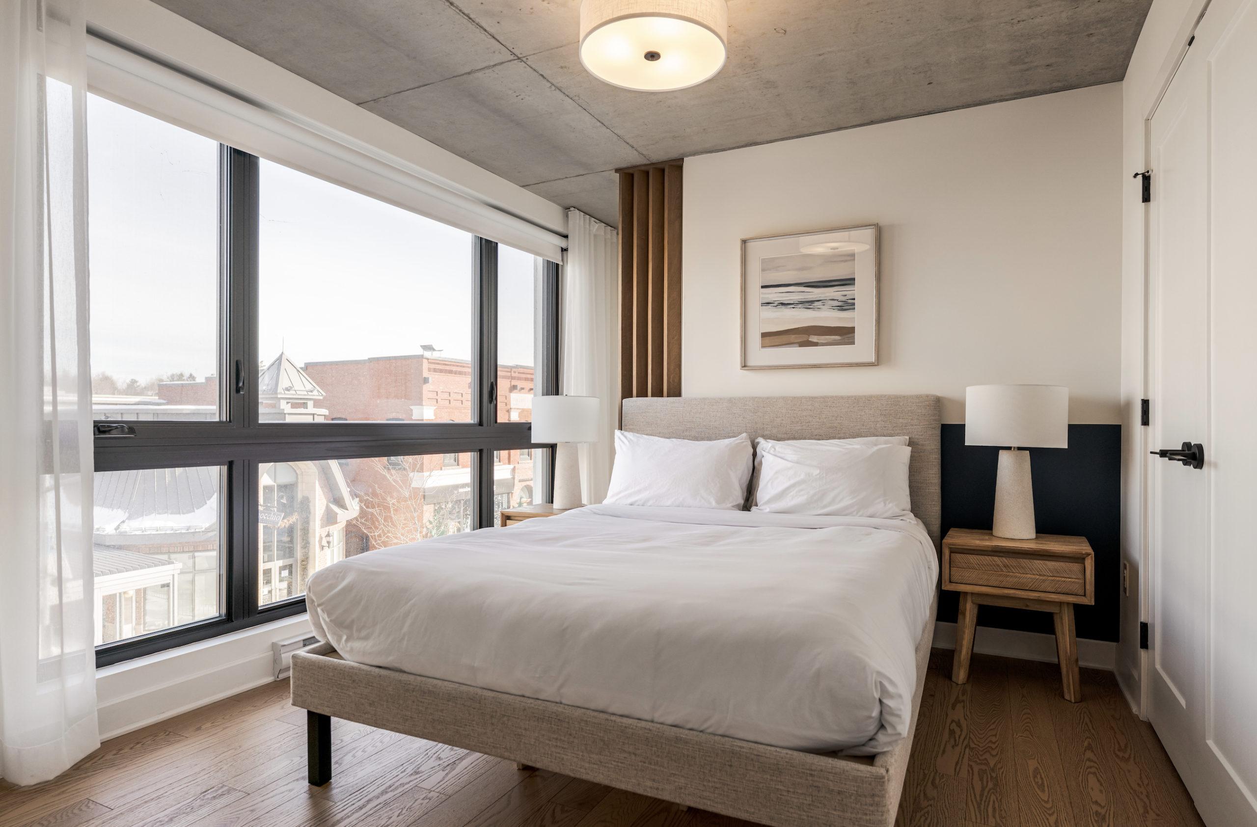 Son balcon chauffé dévoile une vue imprenable sur la rue Principale, pour vivre pleinement l’effervescence du centre-ville dans un cadre résolument raffiné.