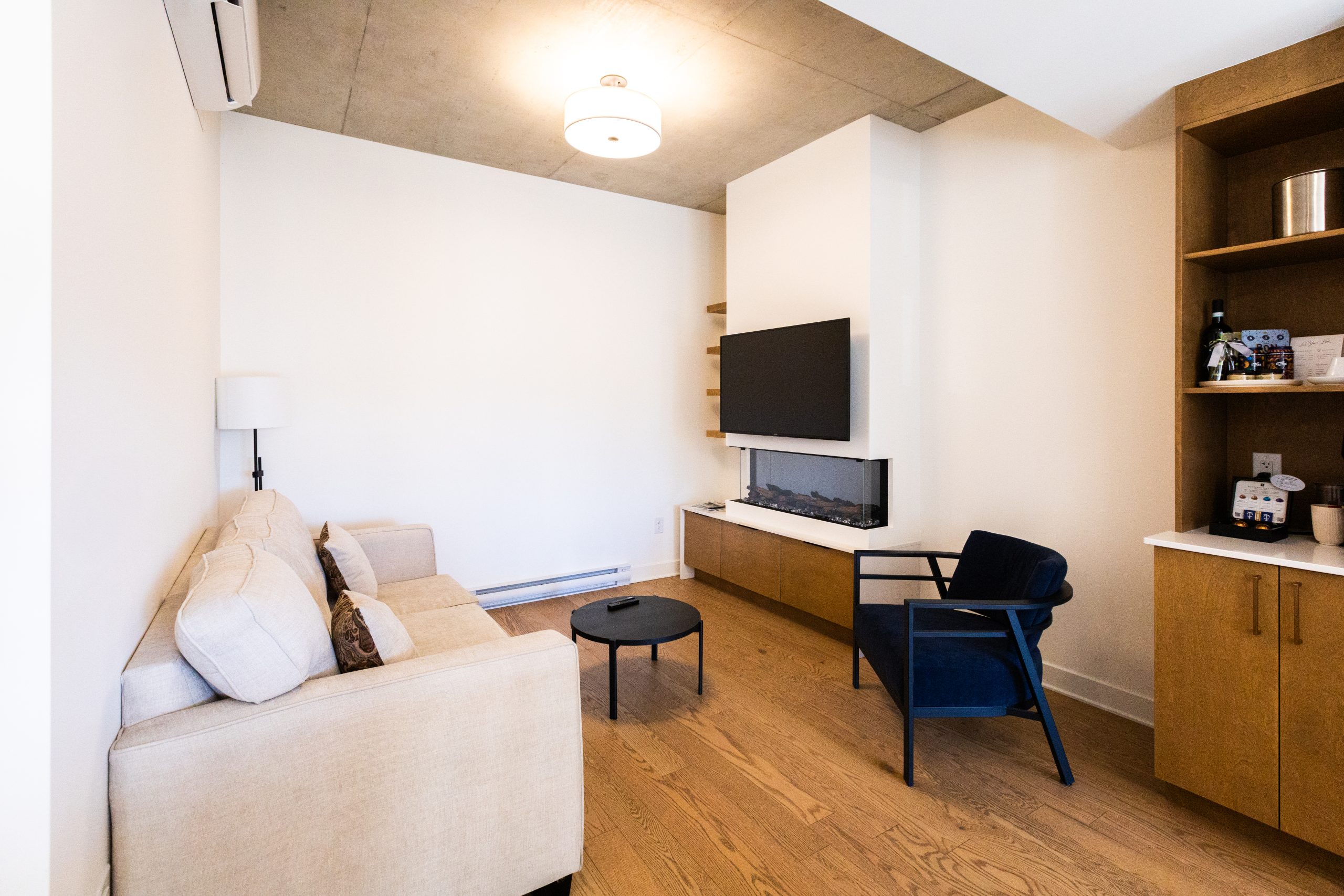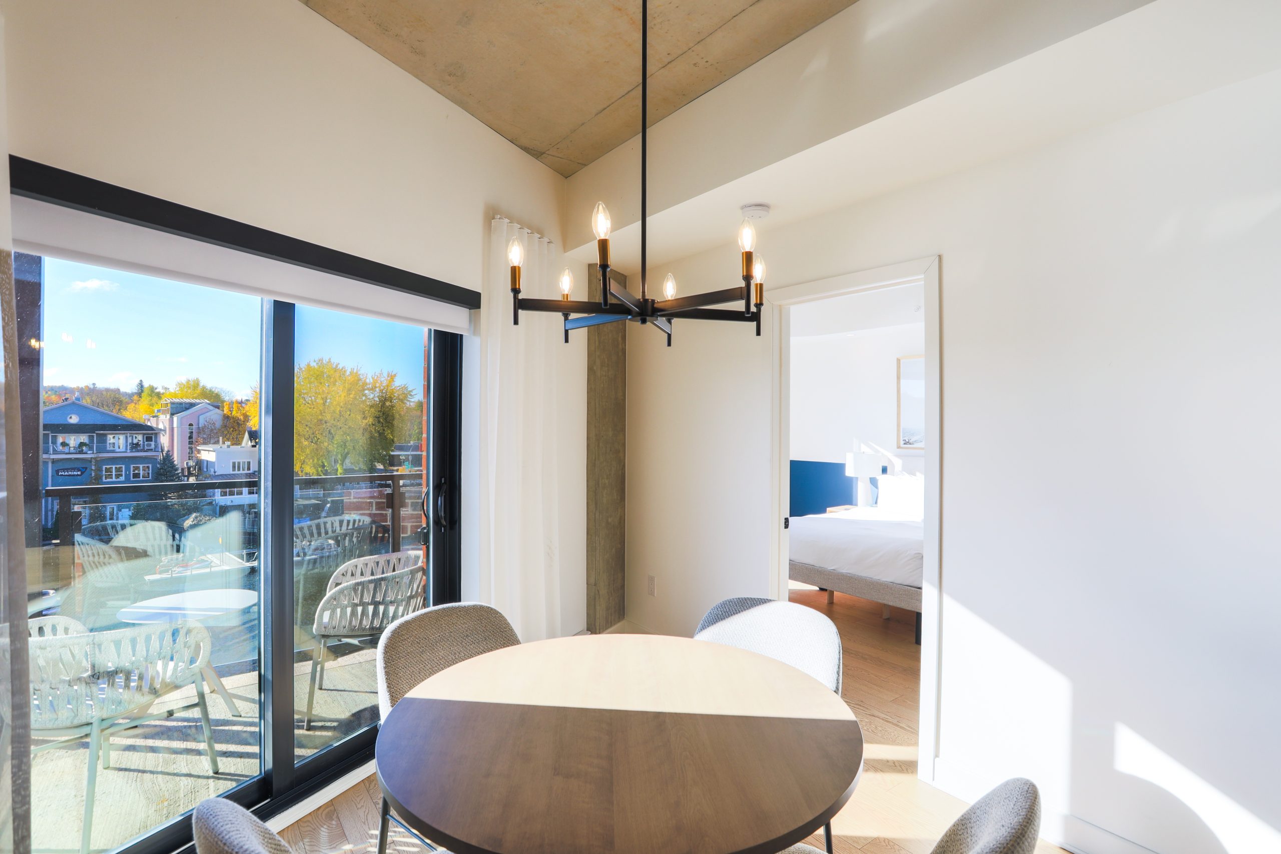 Une unité d’une chambre offrant un grand lit et un balcon privé.
