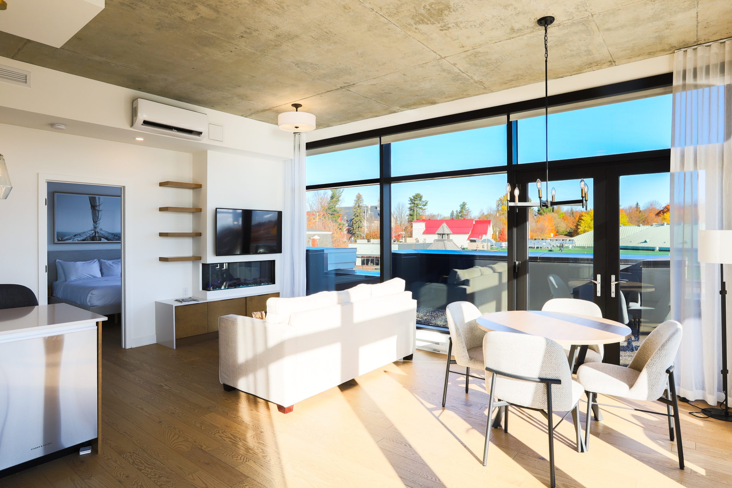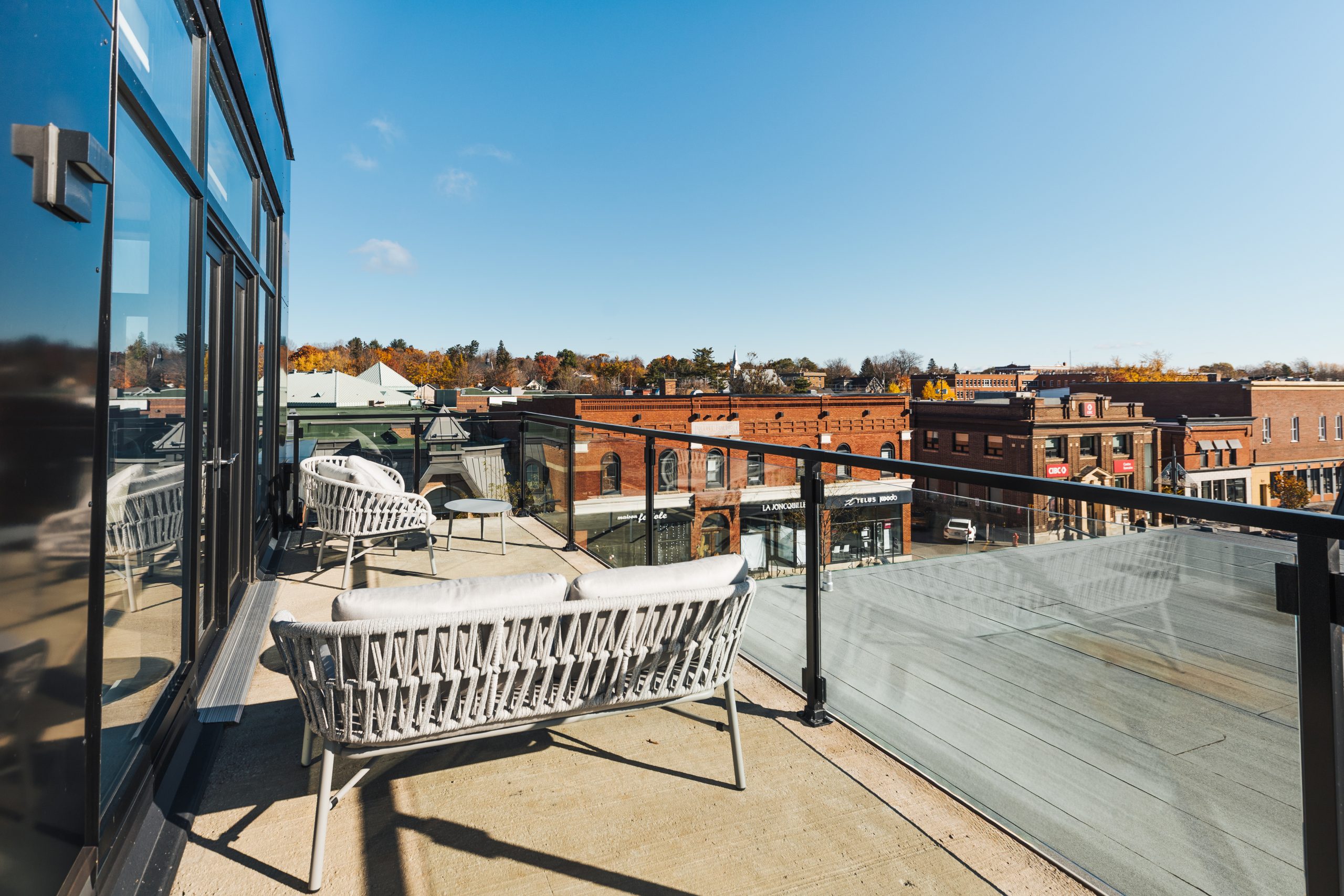 Sa vue panoramique sur la rue Principale invite à vivre pleinement l’effervescence du centre-ville.